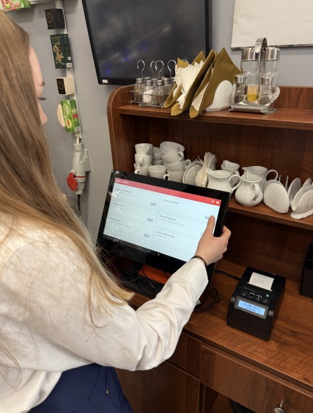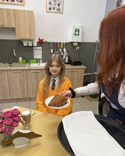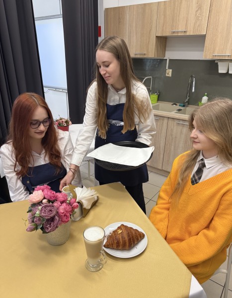 Uczniowie po zabonowaniu zamówienia, realizowali je i podawali do stolika. Niby proste czynności, ale wymagajace skupienia i uwagi. Zły bon to nieprawidłowy rachunek i niezadowolny gość, a takich w hotelartswie nie chcemy.