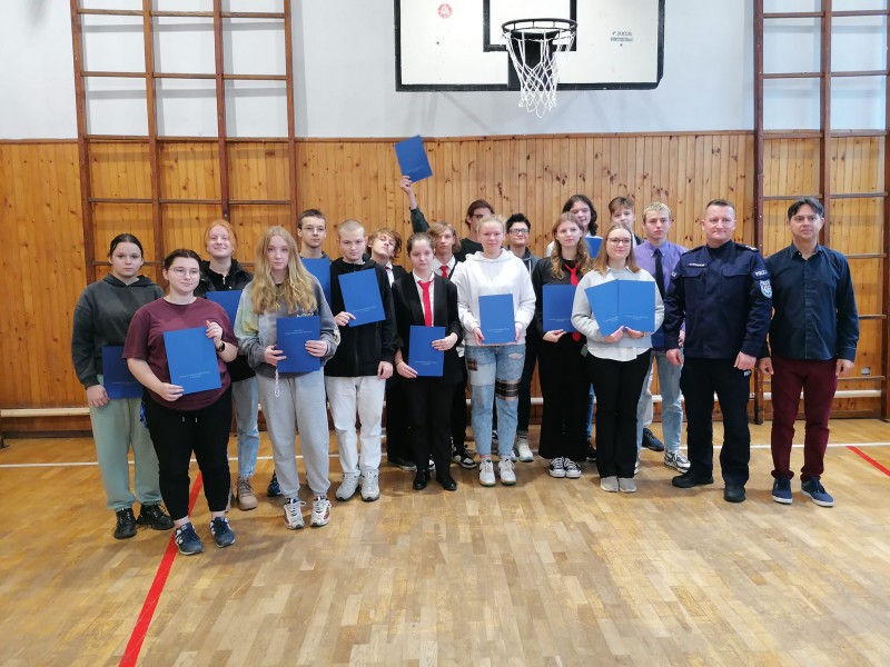 Doceniając wysiłek i zaangażowanie młodych ludzi oraz ich opiekunki - Pani Katarzyny Ponikowskiej podczas organizacji stoisk policyjnych na VII pikniku lotniczym Skrzydła nad Kazimierzem, Komendant Powiatowy Policji w Puławach, mł. insp. Rafał Skoczylas spotkał się z młodymi ludźmi, aby im podziękować.