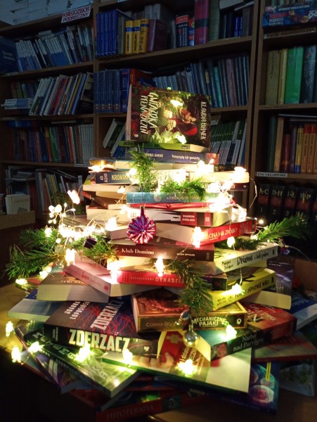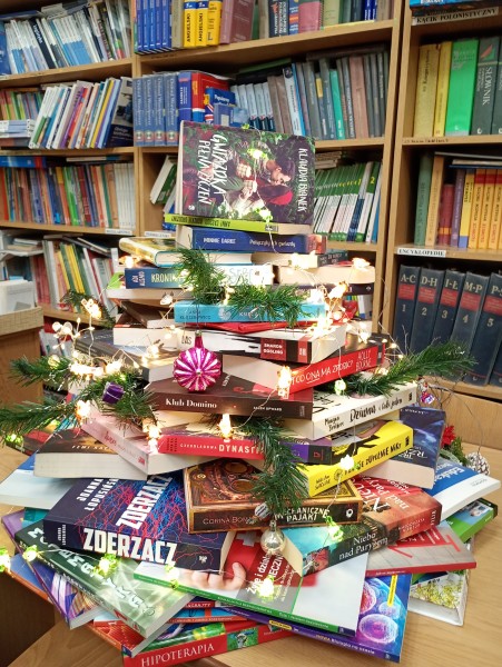 Nie wyobrażamy sobie świąt bez choinki. Nietypowe drzewko, ułożone z książek możemy od dziś podziwiać w szkolnej bibliotece.