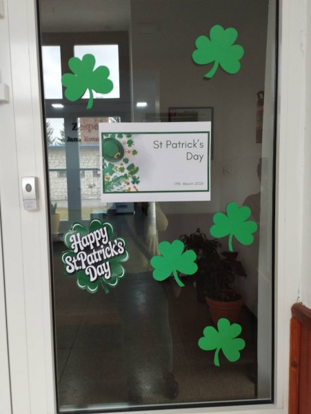 Poza tym na drzwiach sal naszej szkoły zostały umieszczone slajdy z informacjami na temat osoby Św. Patryka, obchodów jego dnia oraz Irlandii.
