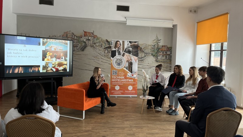 Spotkanie pod hasłem "Hotele są tak dobre jak ludzie, którzy w nich pracują" poprowadzili redaktorzy szkolnego Radia Koszczyc. Nasz gość odpowiedział na ponad 30 pytań, a zgromadzeni na sali przyszli hotelarze słuchali go w pełnym skupieniu.