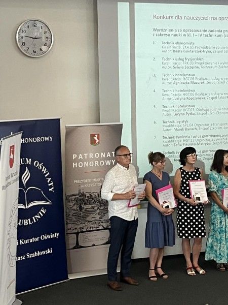 Dodatkowo Pan Marek Banach otrzymał wyróżnienie za opracowanie zadania praktycznego dostosowanego do kwalifikacji w zawodzie technik logistyk (zadanie, rozwiązanie, klucz oceny) a Bilaniuk Anhelina uzyskała tytuł finalisty tej Olimpiady w zawodzie technik hotelarstwa.