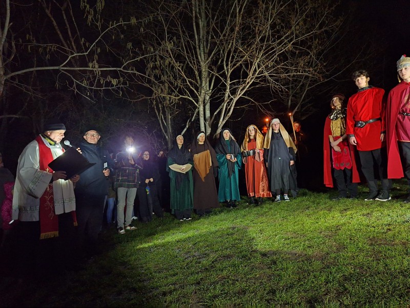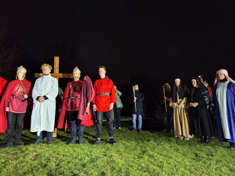 Rozważania prowadził ks. Tomasz Mital. W postacie biblijne wcielili się aktorzy amatorzy z Zespołu Szkół im. Jana Koszczyca Witkiewicza w Kazimierzu Dolnym pod kierunkiem Anny Ewy Sorii. To 15. droga krzyżowa z udziałem uczniów z Koszczyca. Po raz pierwszy uczestniczyliśmy w niej w 2009 r.