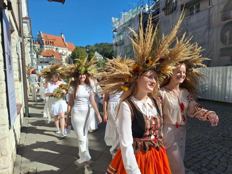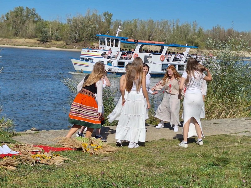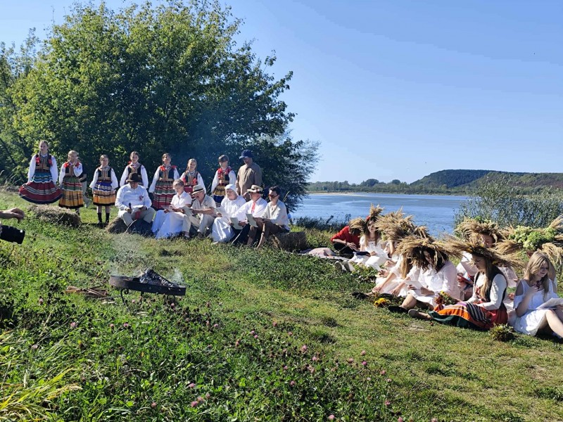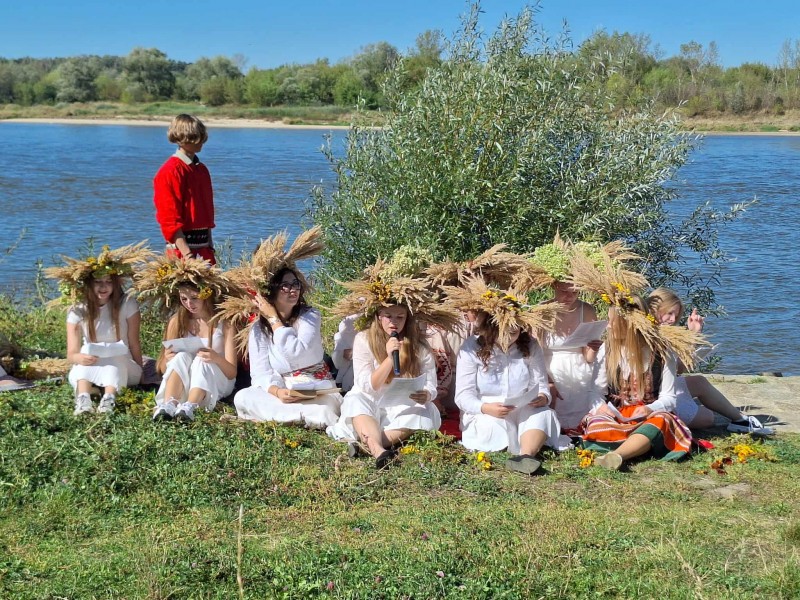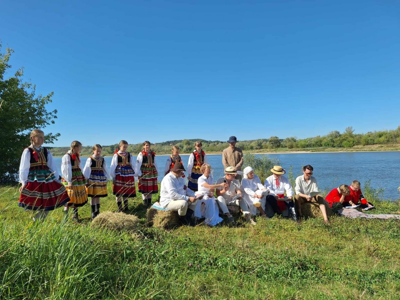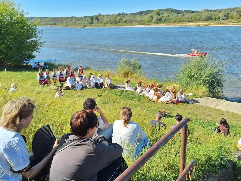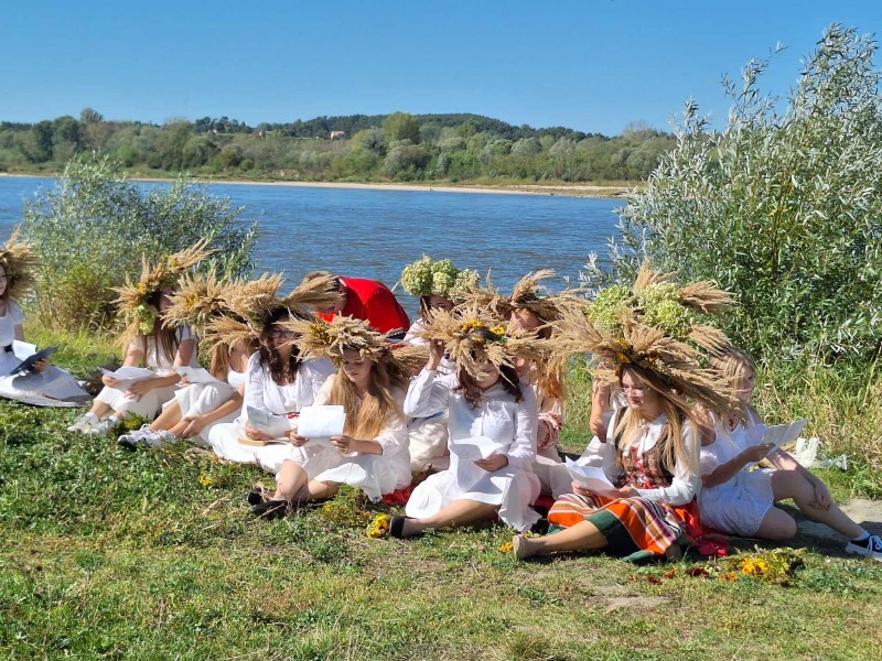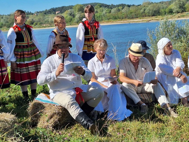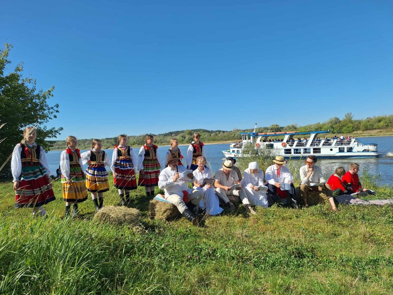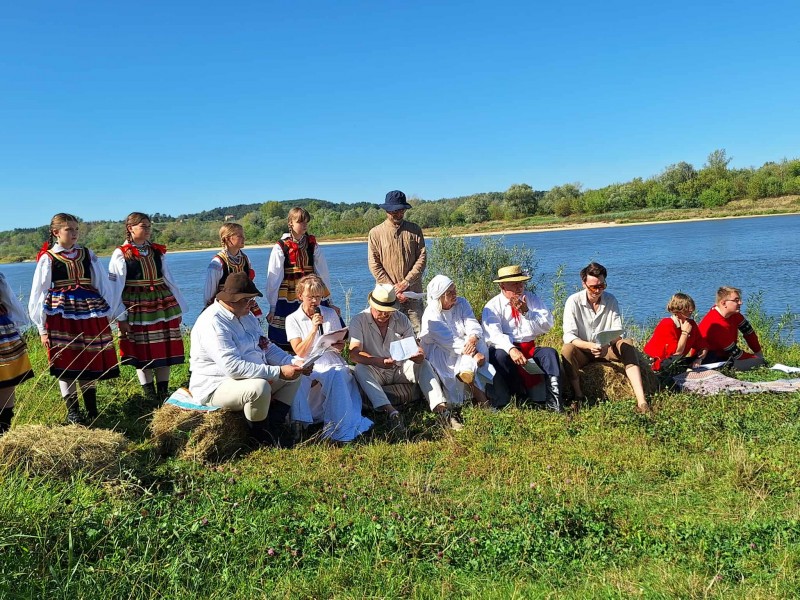 "Pieśń świętojańska o Sobótce" Jana Kochanowskiego odczytana w nadwiślańskiej scenerii na tle Wisły i przepływających statków i łodzi przeniosła wszystkich w czasie. Wrzesień przywołał czerwiec, który w ramach gościńca przyniósł ze sobą piękną słoneczną, wprost upalną pogodę. Wegetacji już nie dało się tak łatwo oszukać. Trawy w dziewczęcych wiankach były płowe. I takie spłynęły Wisłą. No cóż. Jesień już...