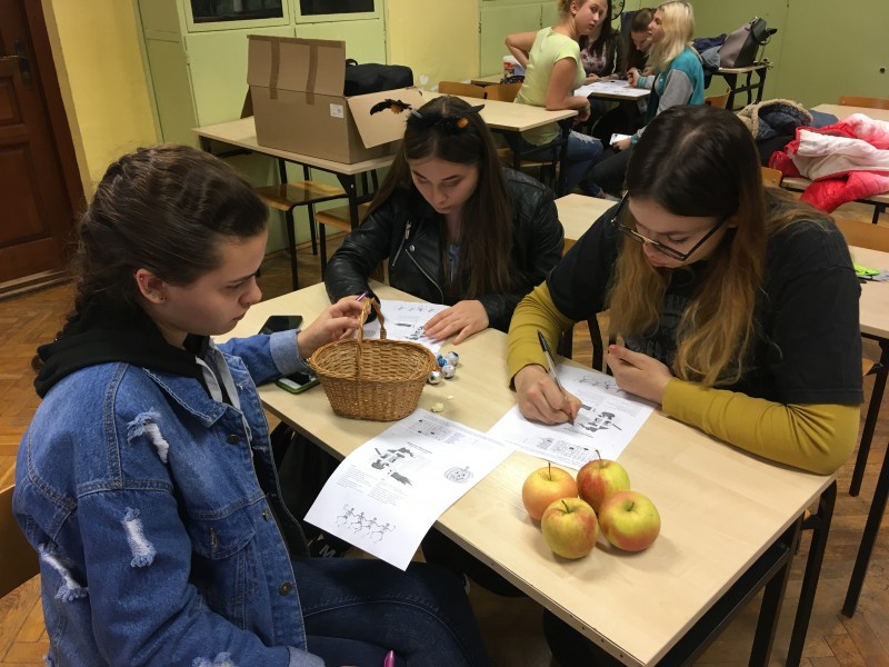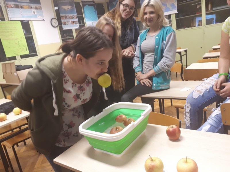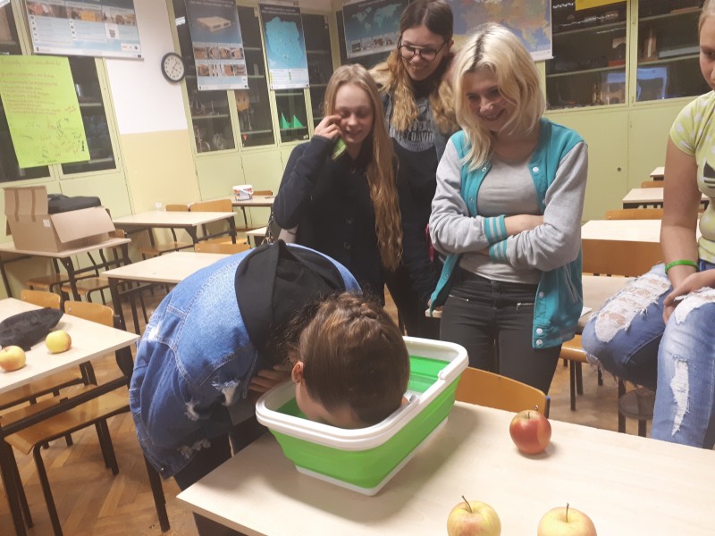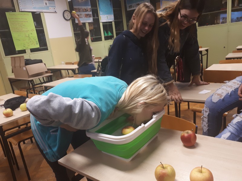 Uczniowie biorący udział w zajęciach mieli możliwość obejrzenia prezentacji multimedialnej nt. obchodów Halloween a świeżo zdobytą wiedzę sprawdzili wypełniając karty pracy oraz biorąc udział w quizie. Następnie wzięli udział w kilku tradycyjnych zabawach Halloweenowych…