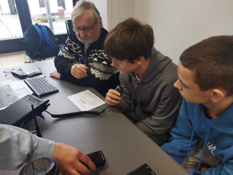 Na zakończenie goście zaprezentowali działanie profesjonalnej stacji krótkofalowej a chętni uczniowie mieli niepowtarzalną okazję przeprowadzić swoje pierwsze wywołania.
