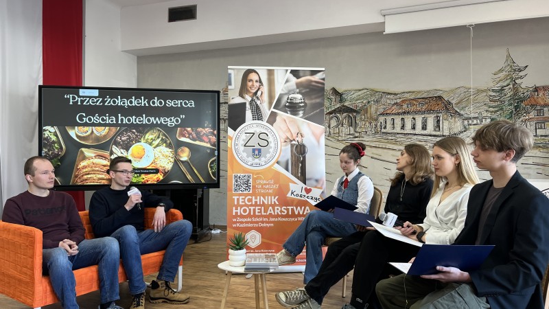 Spotkanie pod hasłem "Przez żołądek do serca gościa hotelowego" poprowadzili redaktorzy szkolnego Radia Koszczyc. Nasi goście odpowiedzieli na ponad 30 pytań, a zgromadzeni na sali przyszli hotelarze słuchali ich w pełnym skupieniu.