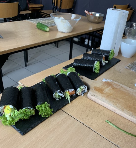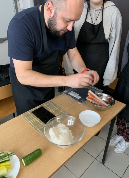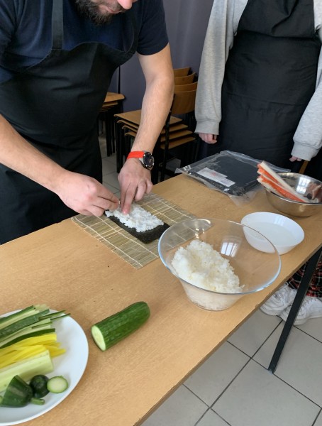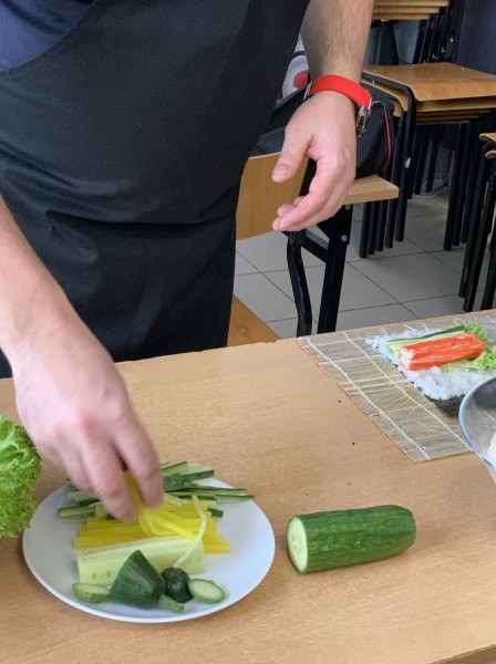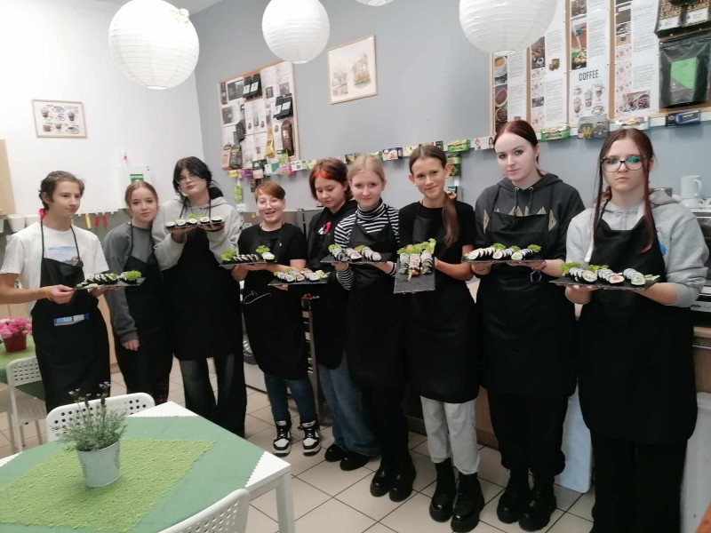 W terminie 9-10.12.2023r. 10 uczniów z klasy 1at wzięło udział w kursie przygotowania sushi.