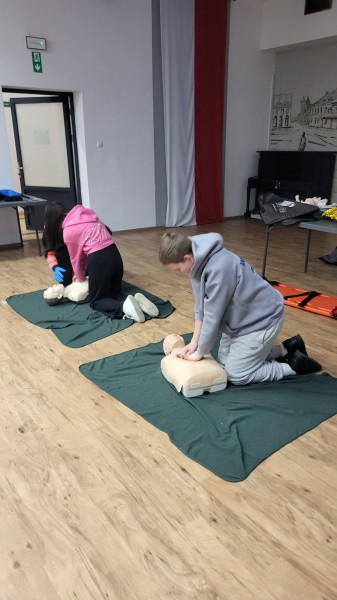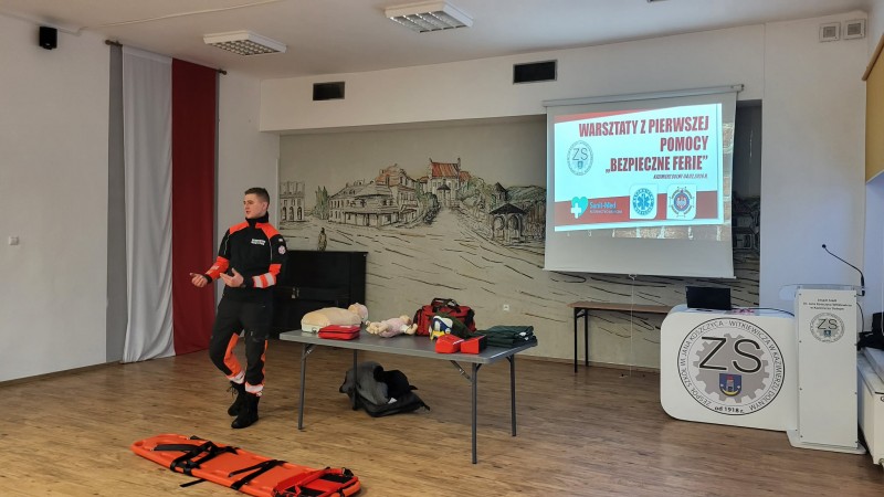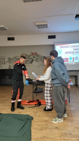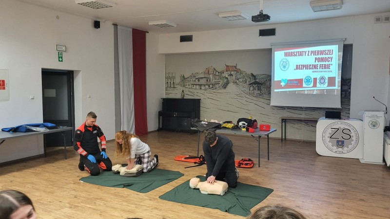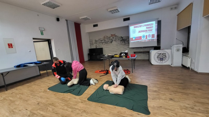 Warsztaty pierwszej pomocy w ramach akcji „Bezpieczne Ferie”.