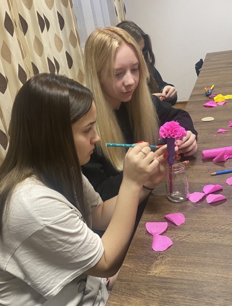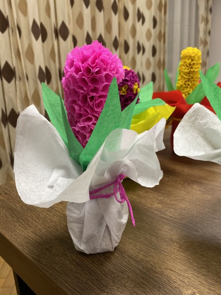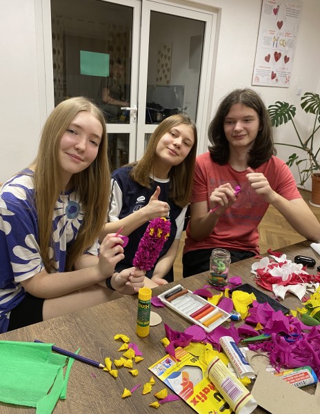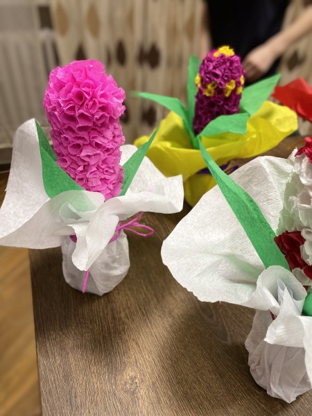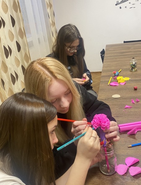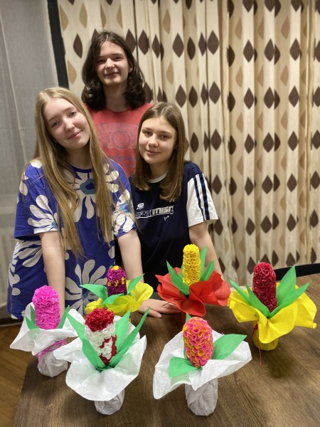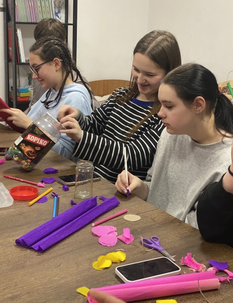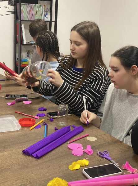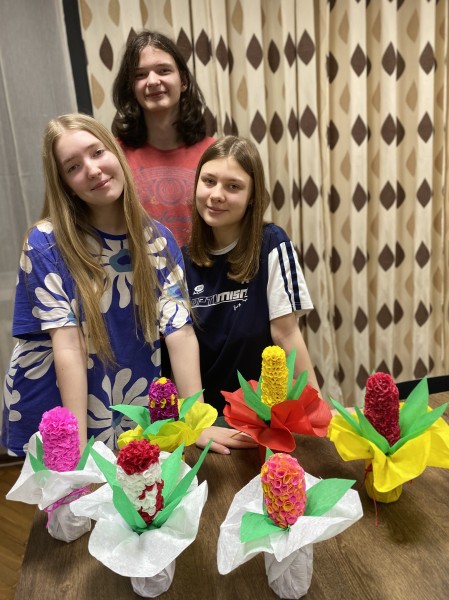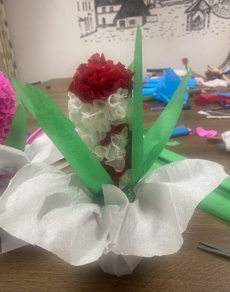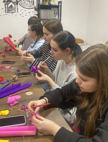 W ramach zajęć internackich młodzież wykonała wiosenne kwiaty.