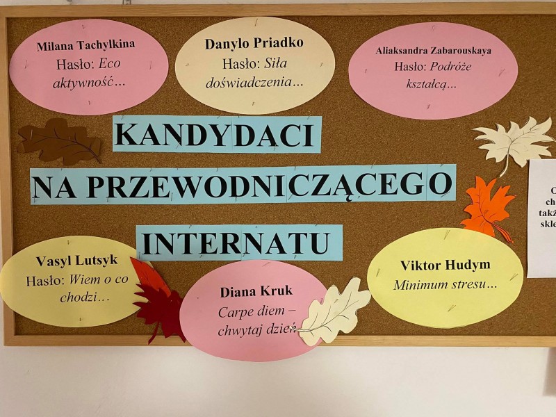 W wyniku przeprowadzonego głosowania przewodniczącym internatów został Danylo Priadko kl.4at, zastępcami Diana Kruk kl.4at, Viktor Hudym kl. 3bgt, łącznikiem internatów Oleksandra Pashechenko.