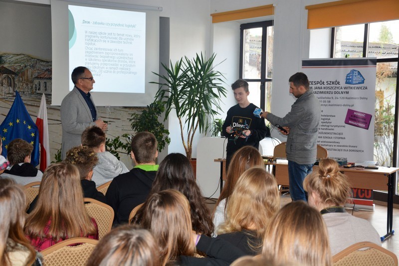 Warsztaty z dronem w ramach II Europejskiego Tygodnia Umiejętności Zawodowych „Odkryj swój talent w Koszczycu” otwierają nowe możliwości kształcenia w zawodzie logistyka. Już od następnego roku, o ile będą zainteresowani, w szkole działać będzie koło, w ramach którego uczniowie skonstruują dron oraz będą testować jego możliwości w logistyce. W ramach programu unijnego planowane jest także szkolenie specjalistyczne w tej dziedzinie.